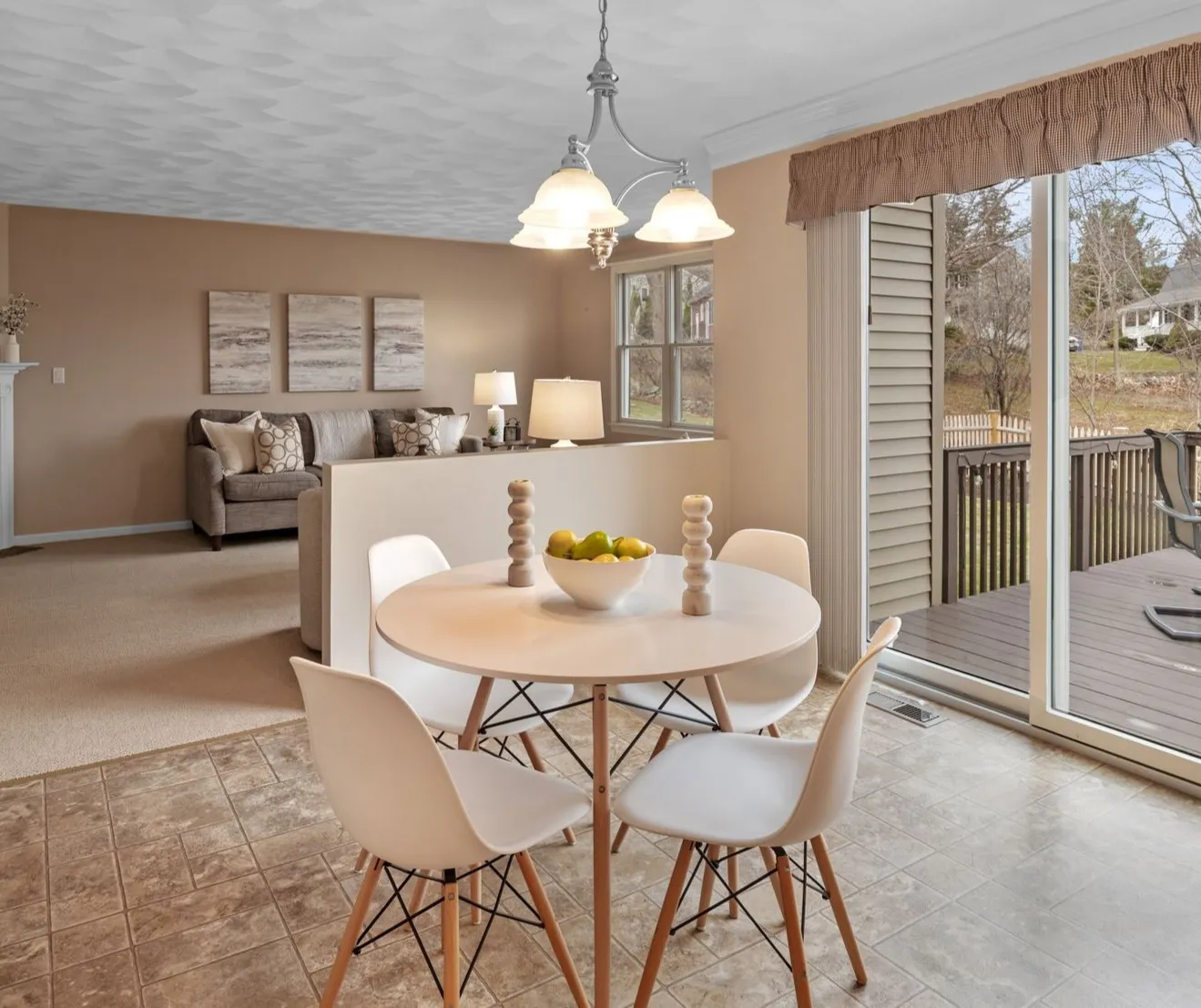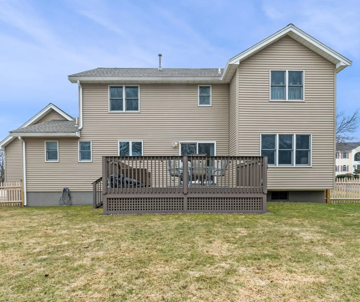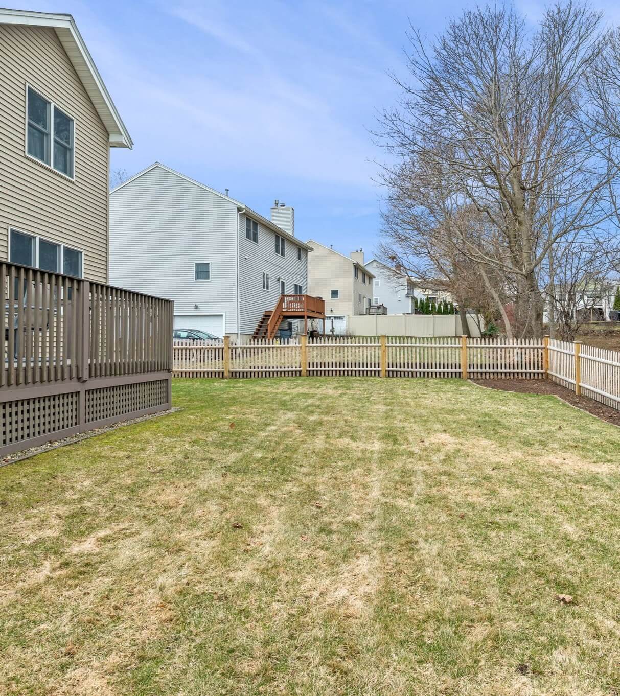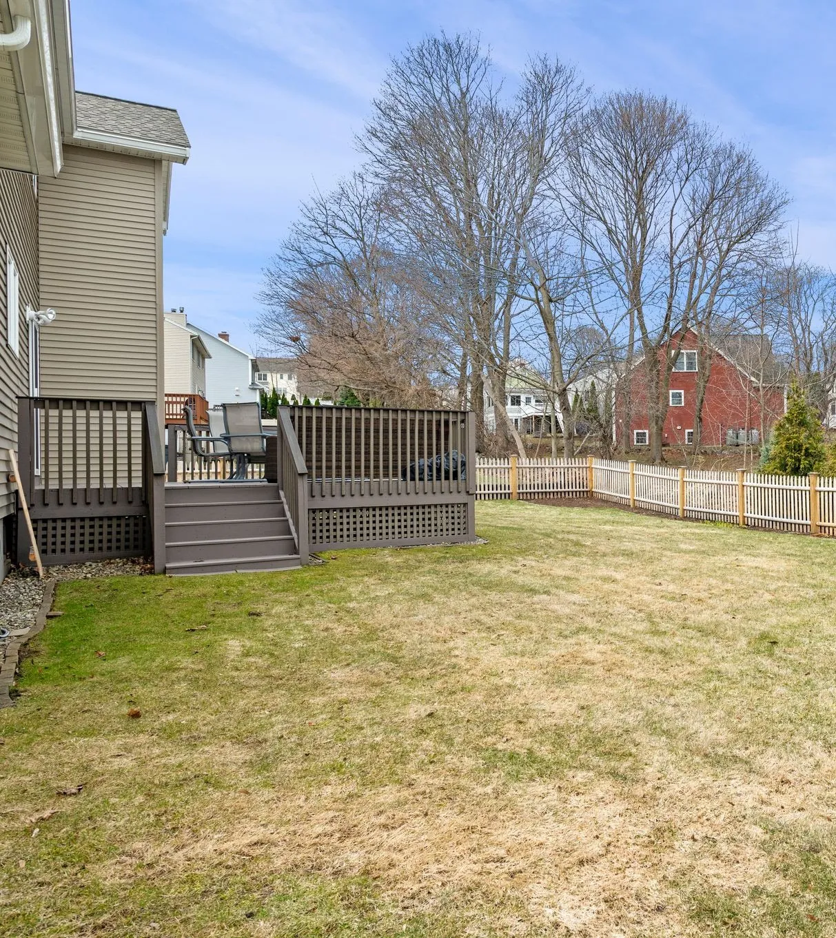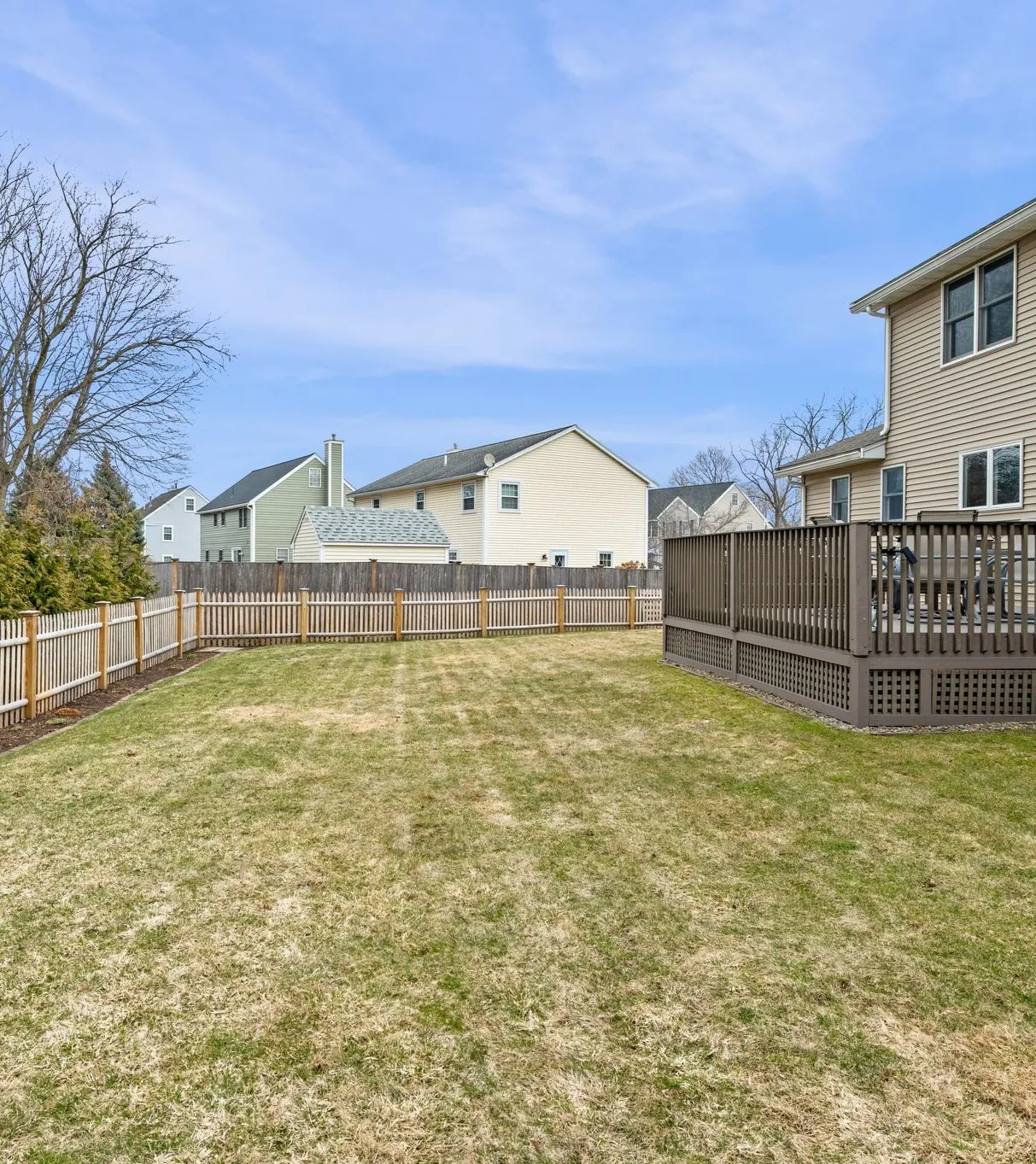 The deck extends directly from the kitchen and breakfast area, making outdoor dining and barbecues easy and natural. Beyond the deck, the large fenced backyard offers open space for play, gardening, or simply having room to spread out and enjoy the outdoors.