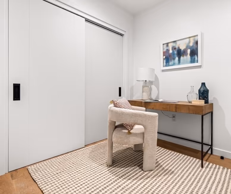 Light-filled and thoughtfully composed, the living space balances openness with intention. Clean lines, generous windows, and a fluid layout create a setting that adapts effortlessly to both hosting and everyday life. The second bedroom flexes easily—studio, guest space, or office—designed to shift with your needs.